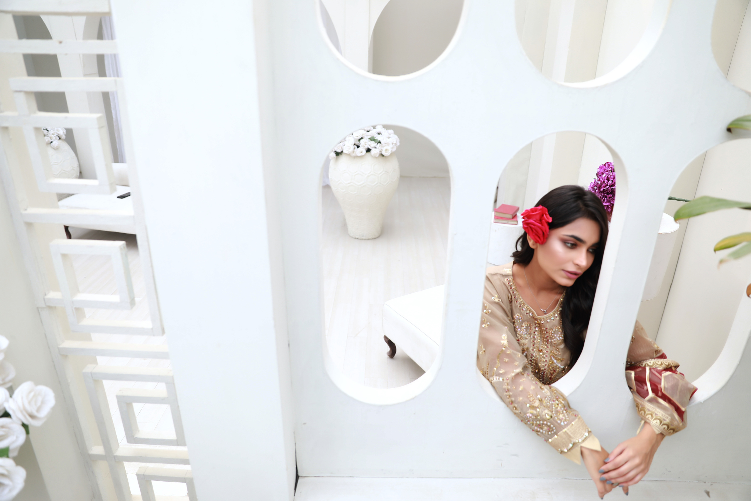 Pair it with traditional gold jewelry and heels for a royal and sophisticated look that stands out effortlessly.